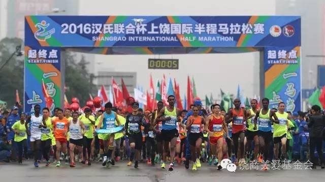 12月4日上午,2016“汉氏联合杯”上饶国际半程马拉松赛在市创业文化公园激情起跑。赛事分为半程马拉松、迷你马拉跑5公里、欢乐体验跑1.6公里三个比赛项目,基金会组织15名“饶商义工”跑手参加5公里迷你马拉跑项目。今年是我市第五次举办上饶国际半程马拉松赛事,本届马拉松赛事由国家田径协会和上饶市人民政府共同主办,赛事的规格高、规模大。参加比赛的选手近1万人,其中外籍运动员30余名,来自11个国家,国内运动员基本覆盖全国各大城市。