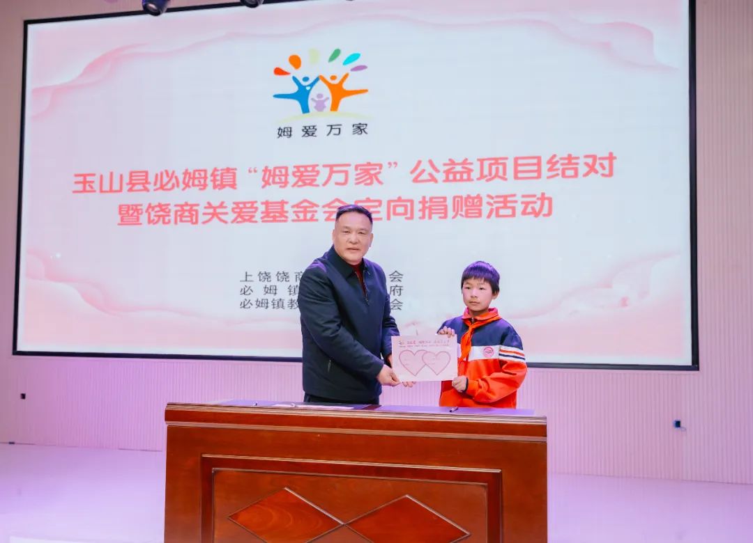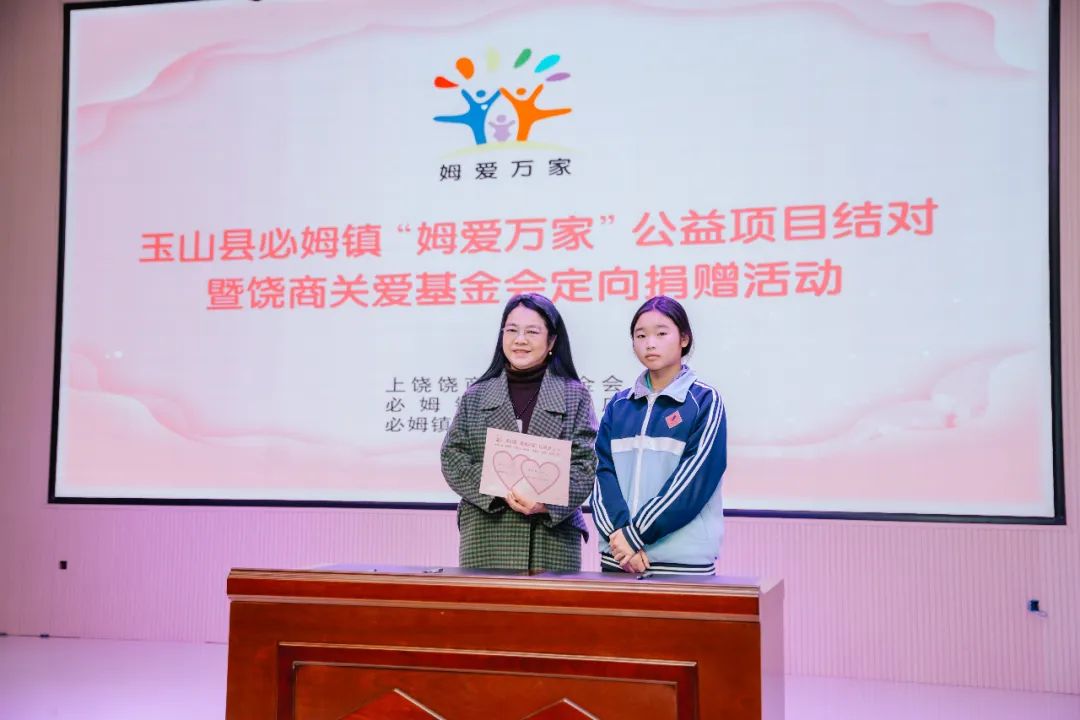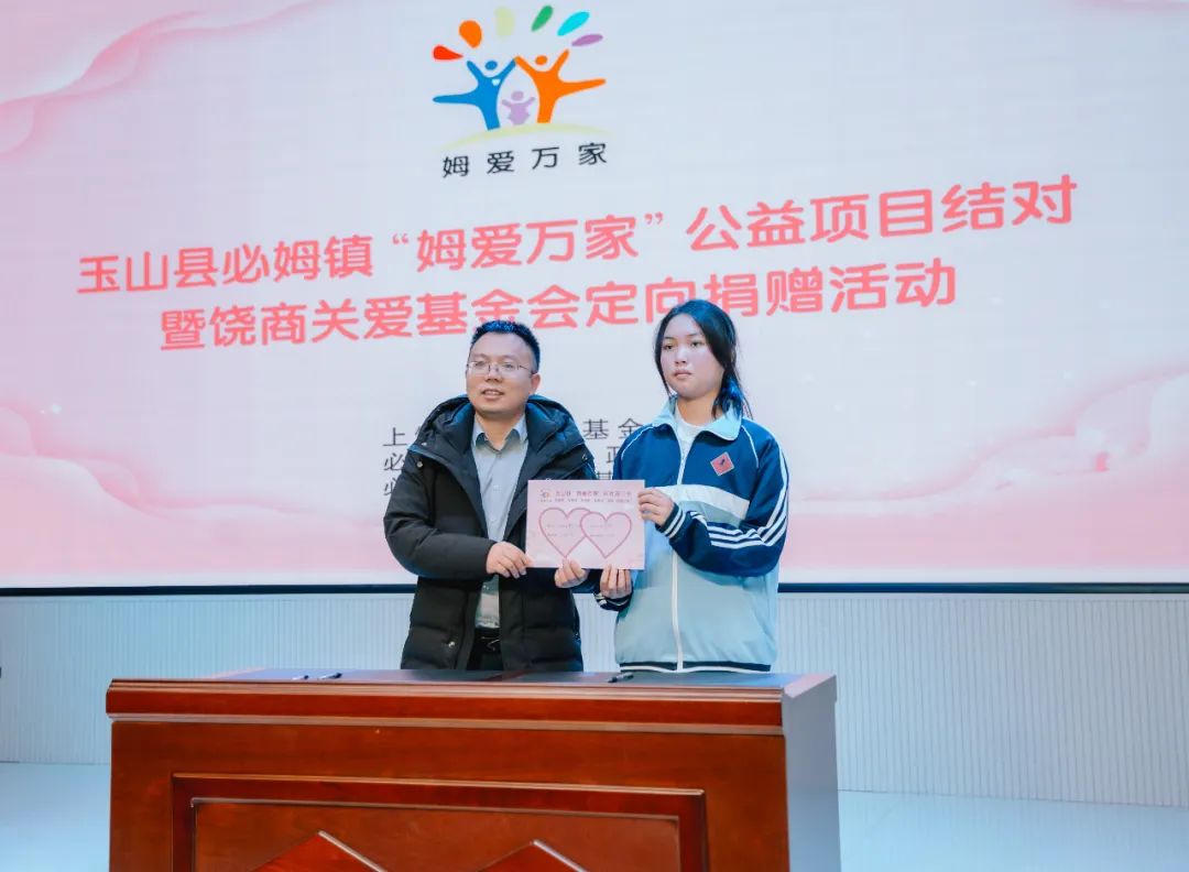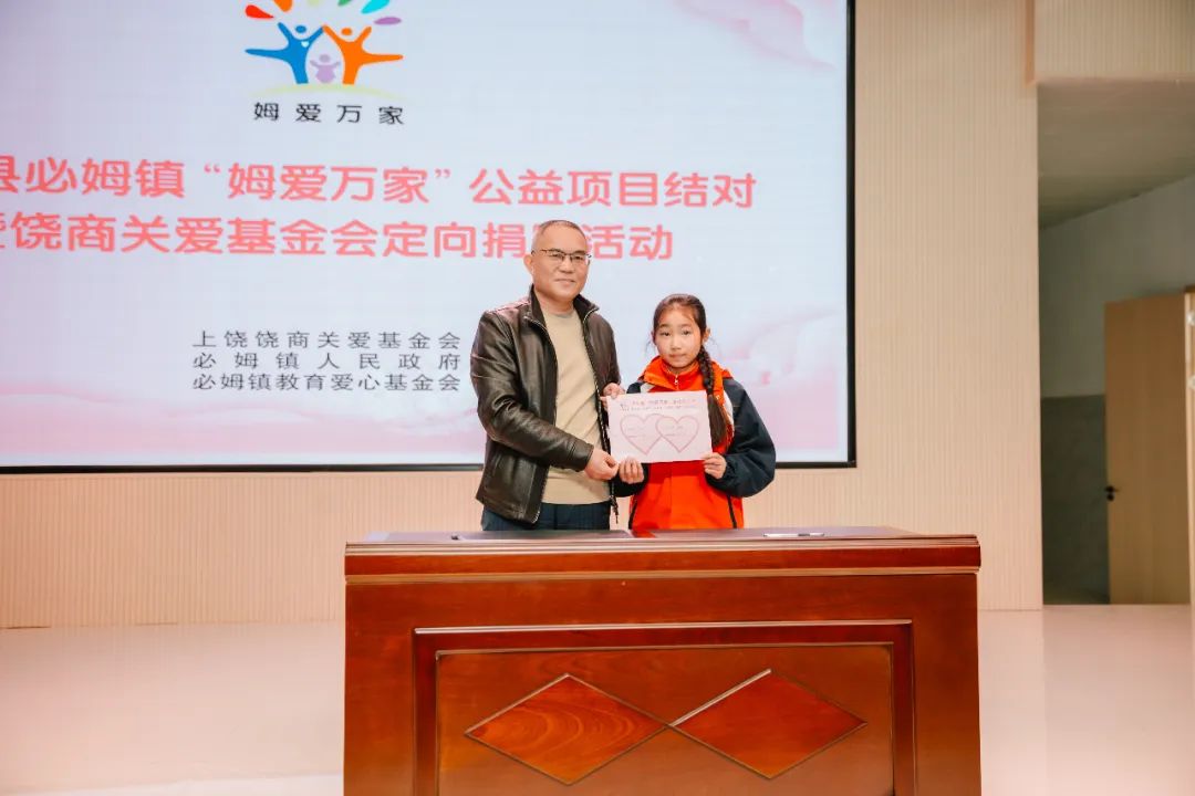 玉山县必姆镇“姆爱万家”公益项目结对暨饶商关爱基金会定向捐赠活动在必姆镇初级中学举办