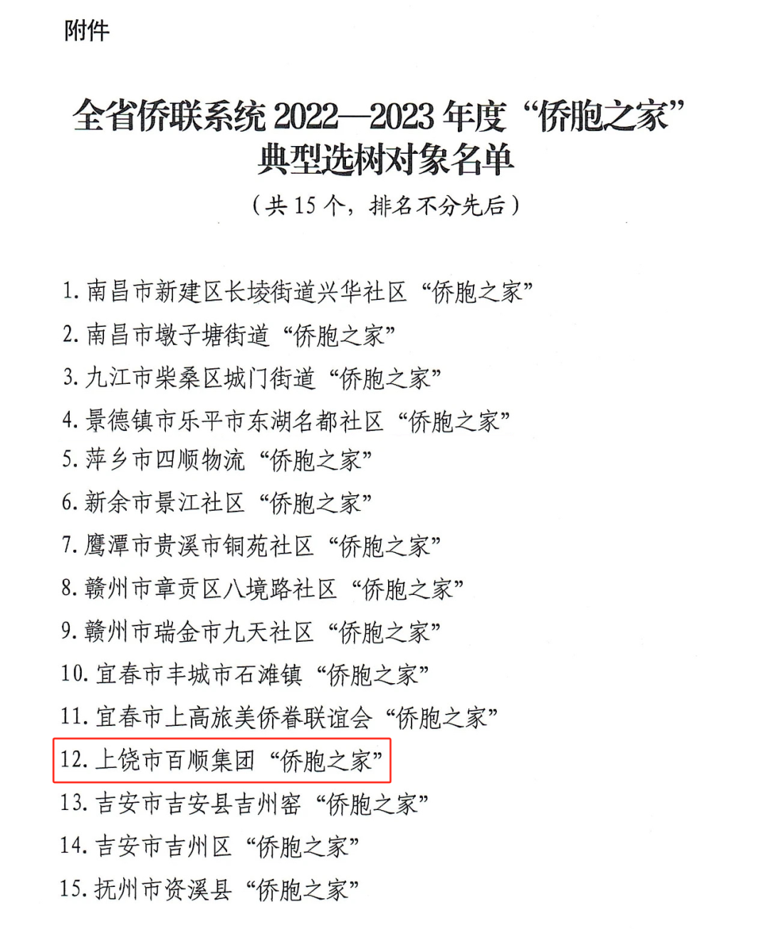 祝贺总会执行会长单位-英国百顺集团(中国)“侨胞之家”荣获2023-2024年“全国侨联系统典型选树单位”称号