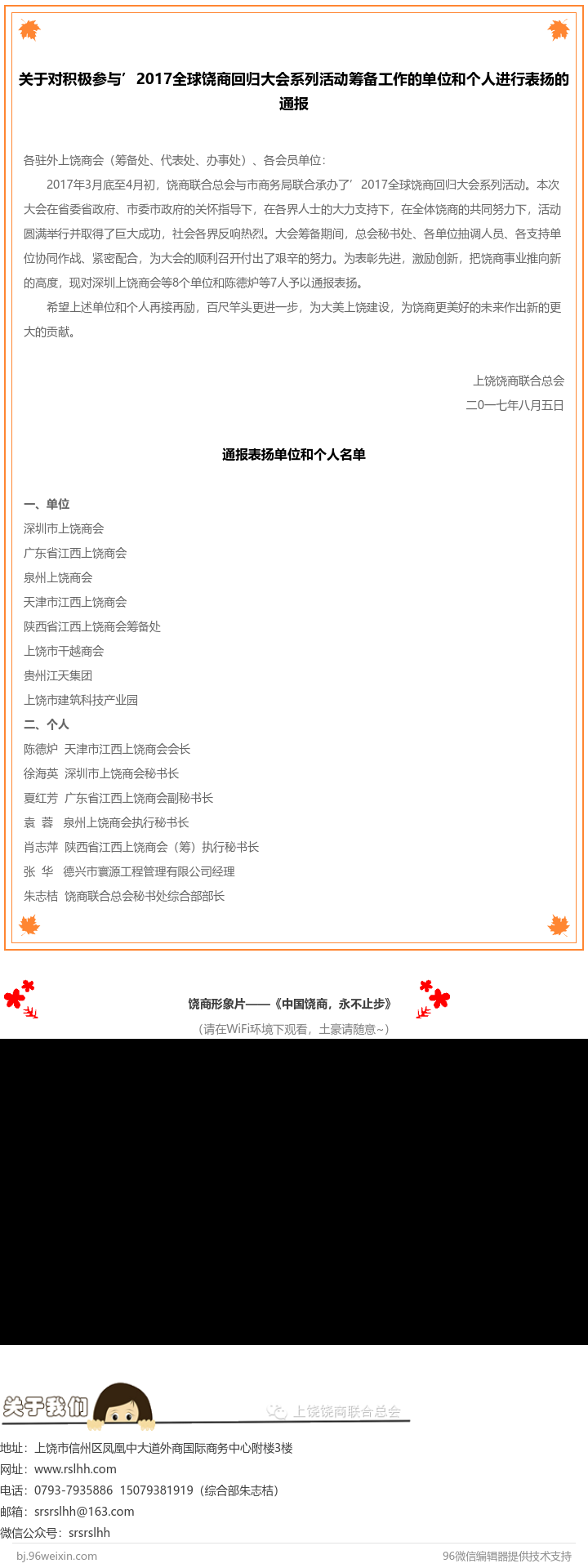 为你点赞 | 关于对积极参与'2017全球饶商回归大会系列活动筹备工作的单位和个人进行表扬的通