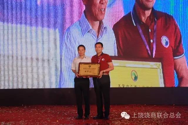 上饶市委副书记、市长颜赣辉为商会会长张军生授牌
