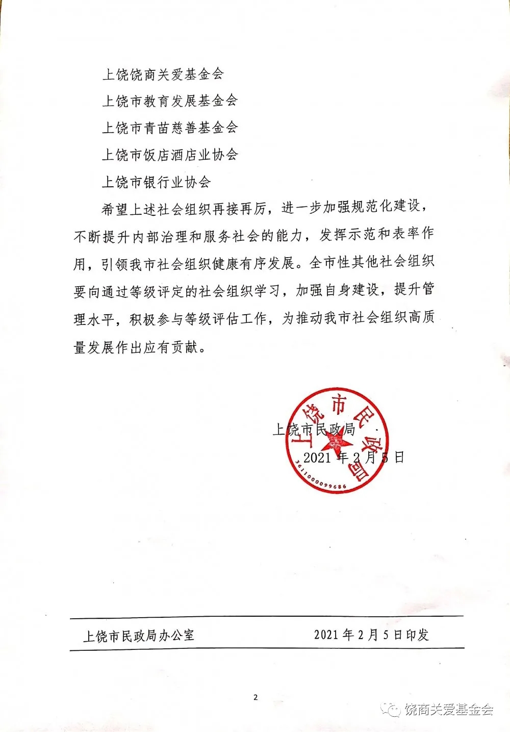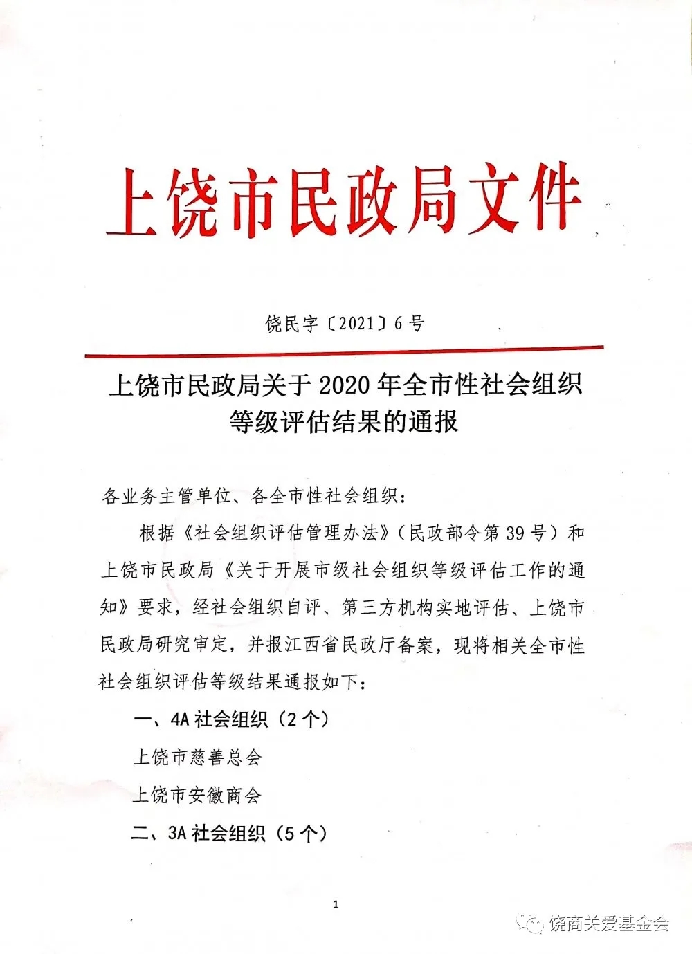 【喜讯】上饶饶商关爱基金会获评3A级社会组织