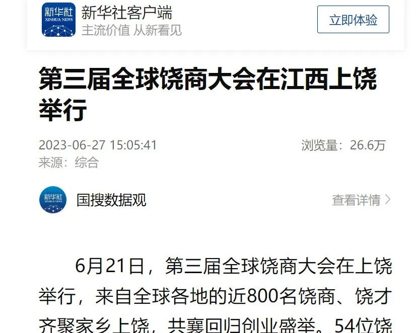 新华社:第三届全球饶商大会在江西上饶举行