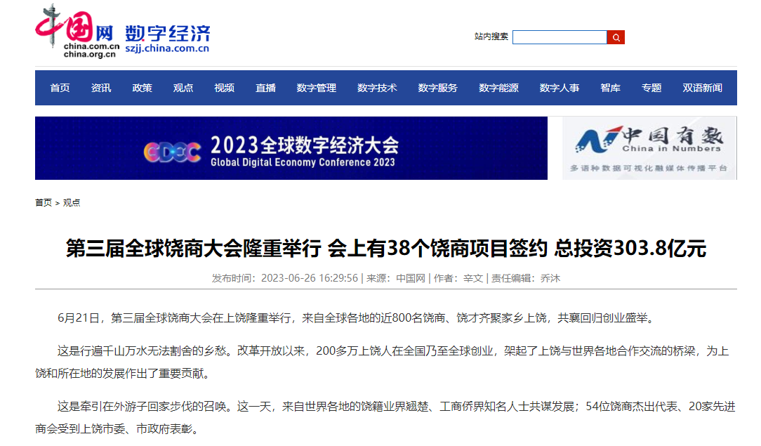 6月21日,第三届全球饶商大会在上饶隆重举行,来自全球各地的近800名饶商、饶才齐聚家乡上饶,共襄回归创业盛举。